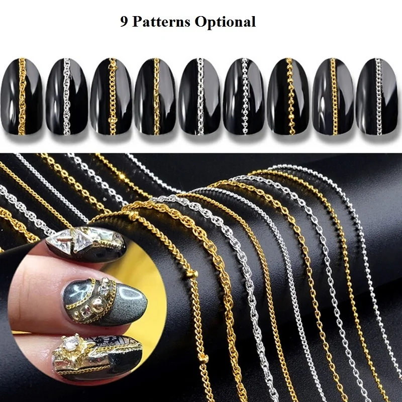 Approx 50cm Length Japanese 3D Gold Nail Metal Chain DIY Steel Ball Nail Chain Punk Style - Nail Art