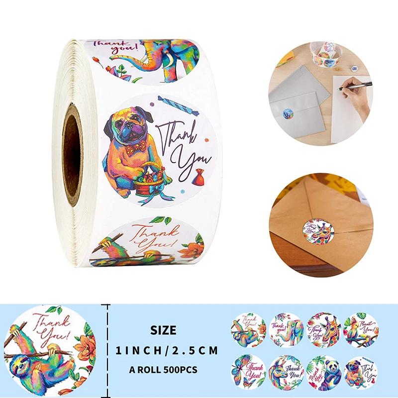 500 PCS 1Inch Round Color Cute Animal Thank You Stickers Seal Label for